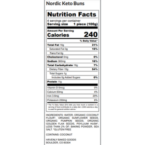 Ingredients: Coconut Flour*, Sunflower Seeds*, Pumpkin Seeds*, Flax Seeds*, Psyllium Husk*, Baking Powder, Salt (*=Organic) (*=Organic)